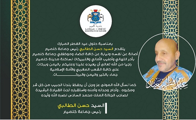 “الحسن الطالبي” رئيس جماعة كليميم يهنئ الساكنة بمناسبة عيد الفطر المبارك..مجتمع إدارة الموقع نشر في 2 مايو 2022 الساعة 4 و 14 دقيقة الصحراء اليومية/ كليميم مشاركة بفايسبوكFacebookFacebookمشاركة بتويترTwitterTwitter مشاركة بواتسابWhatsAppWhatsApp Share to ارسال ايميلEmailEmail مشاركة بلينكدانLinkedInLinkedInمشاركة بمسنجرMessengerMessenger طباعةPrintطباعة رابط المشاركة :