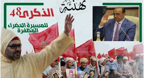 إننا ونحن في غمرة احتفـالات الشعب المغربي في أجواء طافحة بمشاعر الحماس والإكبار، بالذكرى الثامنة والأربعين للمسيرة الخضراء المظفرة، هذه الذكرى الغالية على قلب كل المغاربة الذين يؤكدون تعلقهم الدائم بأهذاب عرشكم العلوي المجيد وتجندهم الدائم في كل وقت وحين، للدفاع عن مكتسباتنا الوطنية ووحدتنا الترابية وبذل الغالي والنفيس من أجل صيانتها والذود عن حماية مقدساتها