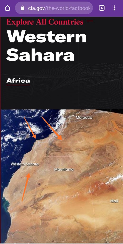 وخلال البحث بالموقع الرسمي لوكالة الإستخبارات الأمريكية عن الصحراء الغربية، تظهر في السياق ذاته خريطة أخرى مجتزأة للنفوذ الترابي للمملكة المغربية متضمنة خريطة للأقاليم الصحراوية بشكل معزول عن المغرب، وهو الشيء الذي يثير بعض التساؤلات حول ما إذا كان ذلك “سهوا” فقط من طرف القائمين على الموقع أم أن في الأمر “ازدواجية مقصودة”؟