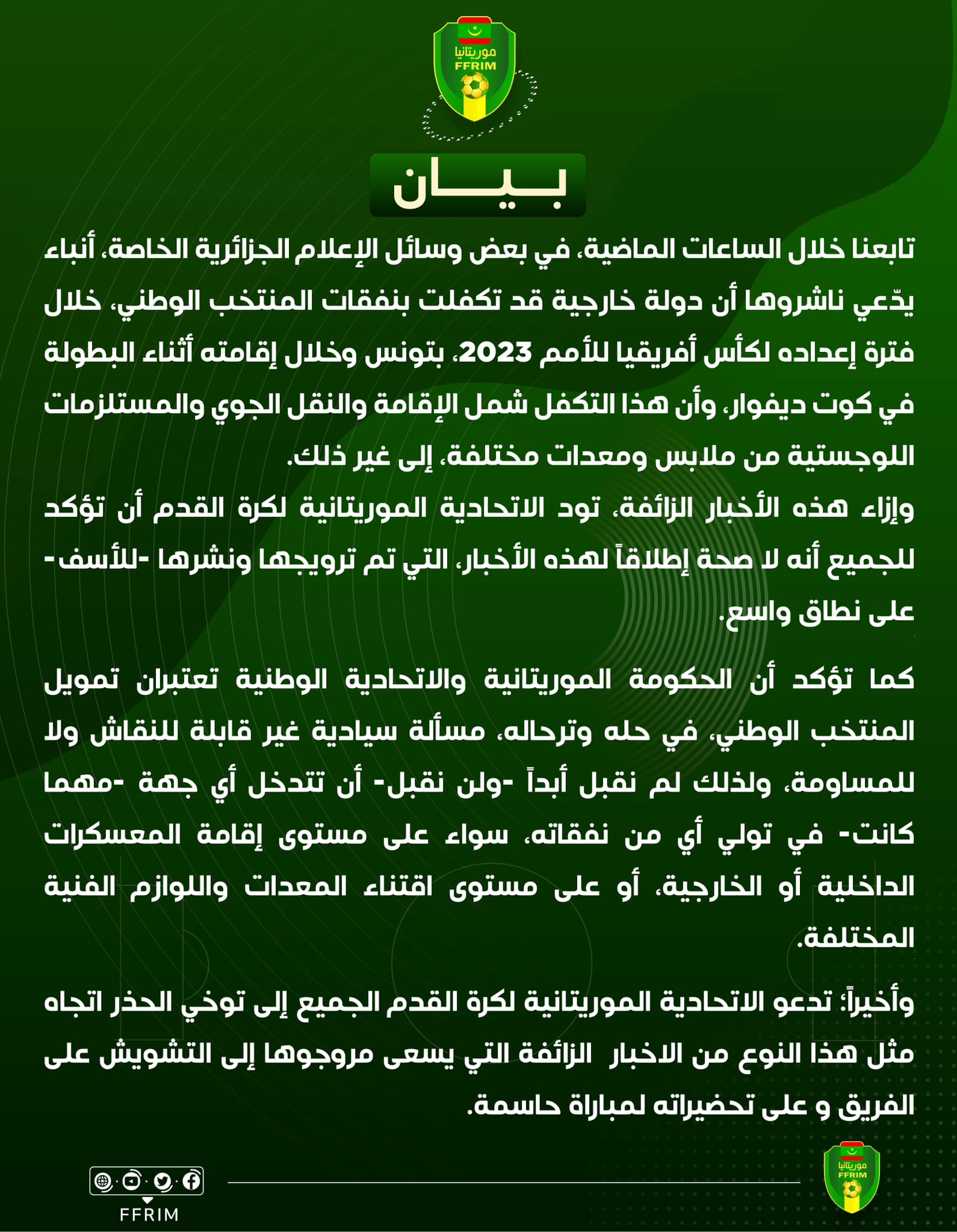 شاعْلة بين كَابْراناتْ الزَّفْتْ وُ موريتانيا..الاتحاد الموريتاني نَاضْ لِهُمْ..ولكن بيني وُ بينكم عْلَى مَنْ كَيْدَقُّو الكراغلة فهادْ البيان…مستجدات إدارة الموقع نشر في 23 يناير 2024 الساعة 1 و 36 دقيقة الصحراء اليومية/العيونمشاركة بفايسبوكFacebookFacebookمشاركة بتويترTwitterTwitter مشاركة بواتسابWhatsAppWhatsApp Share to ارسال ايميلEmailEmail مشاركة بلينكدانLinkedInLinkedInمشاركة بمسنجرMessengerMessenger طباعةPrintطباعة رابط المشاركة : الاتحاد الموريتانيالجزائر