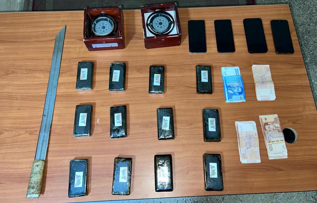 إجراءات التفتيش التي أجريت بداخل منزلين بحي العودة وحي الراحة، أسفرت عن توقيف باقي المشتبه فيهم، وحجز ثمانية صفائح إضافية من مخدر الشيرا، وكذا بوصلتين لتحديد المواقع، علاوة على سلاح أبيض عبارة عن سيف تقليدي الصنع، بالإضافة إلى قناع لإخفاء ملامح الوجه، ومبلغ مالي يشتبه كونه من عائدات هذه الأنشطة الإجرامية، وقد بلغ الوزن الإجمالي للمخدر المحجوز حوالي ثلاثة كيلوغرامات.