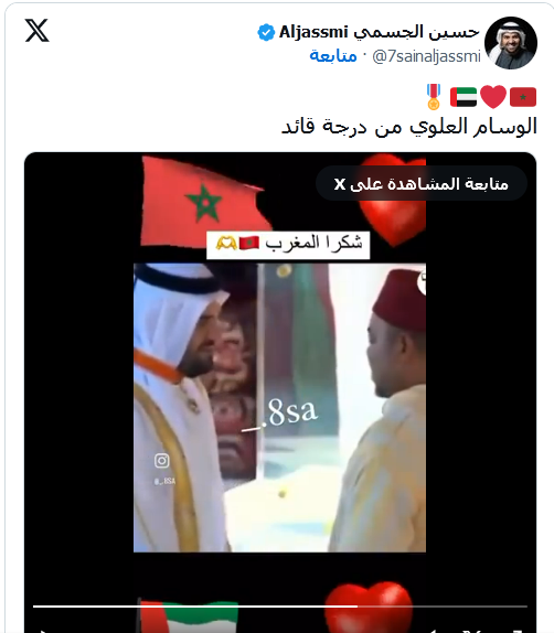 “حسين الجسمي” رَدْ على نظام العسكر غِيرْ بالفَنْ.. وُشارك مْع متابعيه فيديو ديال حُصُولُو عْلى وسام من درجة قائد من سيدنا..