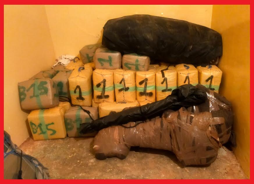 كما مكنت الأبحاث والتحريات المتواصلة في هذه القضية عن تحديد مكان إخفاء شحنة المخدرات، حيث أسفرت عملية التفتيش المنجزة بداخل منزل أحد الموقوفين بالمنطقة القروية “أكرار”، التي تبعد بحوالي 14 كيلومترا عن مدينة كلميم، عن العثور على 48 رزمة بلغ مجموع وزنها طن و586 كيلوغراما من مخدر الشيرا، علاوة على حجز زورق مطاطي ومحركين بحريين ومبلغ مالي يشتبه في كونه من متحصلات هذا النشاط الإجرامي.