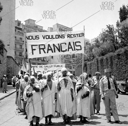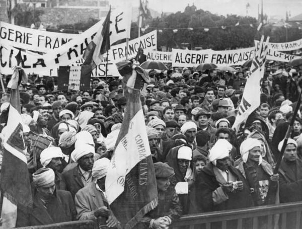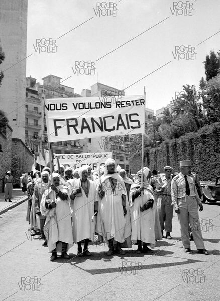 Guerre d'Algérie. Manifestation d'Algériens pour l'Algérie française. Alger, mai 1958.