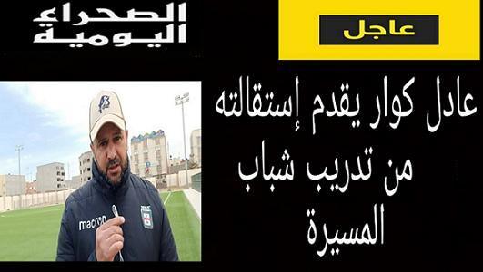 أكد السيد بلاهي أباد نائب رئيس فريق شباب المسيرة الرياضي في إتصال هاتفي خبر استقالة الإطار الوطني عادل كوار من تدريب الفريق الصحراوي.