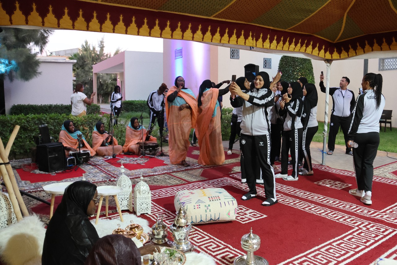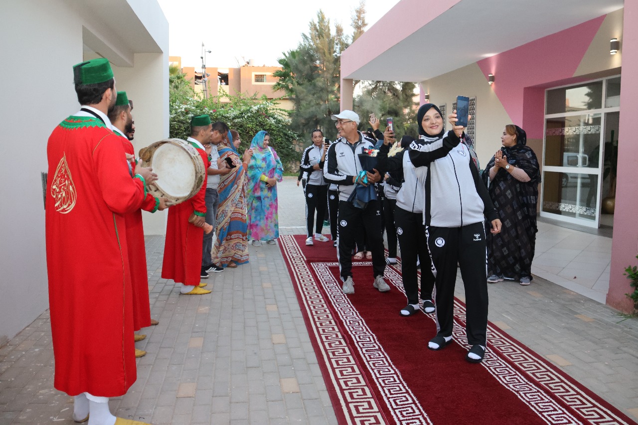 الحفل تميز بتقديم لوحات فولكورية فنية وتنظيم حفل شاي، احتفاء بوصول لاعبات وأطر الفريقين الذي سيمثلان كرة اليد العربية خلال هذا العرس الرياضي الإفريقي، الذي ستحتضنه مدينة العيون في الفترة من 10 إلى 20 أكتوبر 2024