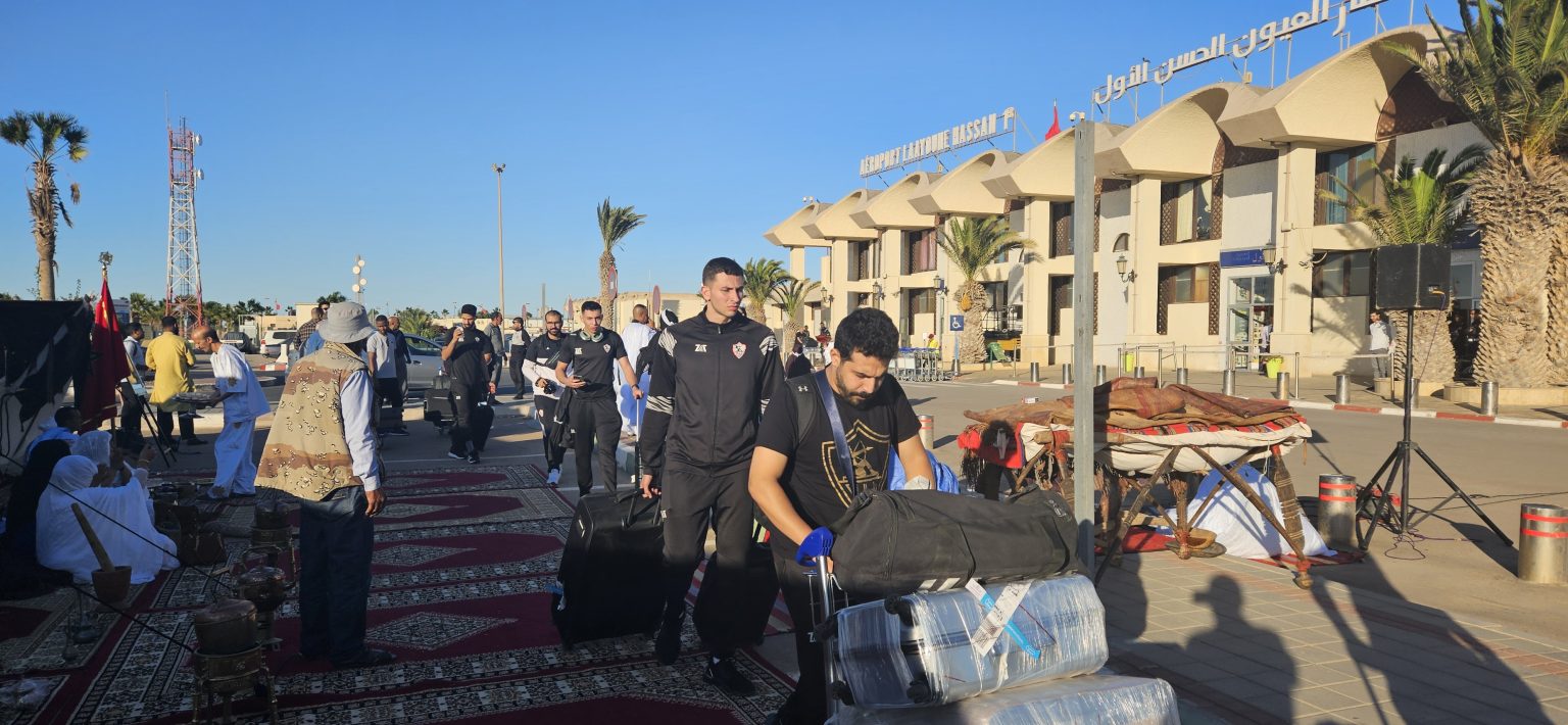 الفريق المصري الذي يتربع على عرش أكثر الأندية تتويجا باللقب الأفريقي برصيد 12 مرة، وصل لمدينة العيون بكامل نجومه يتقدمهم النجم العالمي “أحمد الأحمر ” إلى جانب نجوم الفريق ” كريم هنداوي، محمود خليل، يوسف ناجي، أكرم يسري.