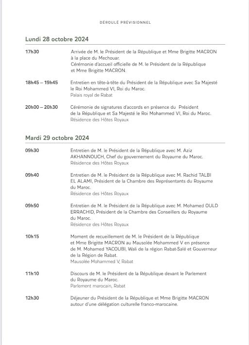 حصري..”الصحراء اليومية” جَابْتْ لِكُمْ برنامج زِيارة”ماكرون” صْبَاحْ للمغرب..وُهَا وُقْتَاشْ غَادِي إتْلاَقَى ولد الرشيد “ماكرون”…سياسة إدارة الموقع نشر في 27 أكتوبر 2024 الساعة 22 و 53 دقيقة الصحراء اليومية/العيونمشاركة بفايسبوكFacebookFacebookمشاركة بتويترTwitterTwitter مشاركة بواتسابWhatsAppWhatsApp Share to ارسال ايميلEmailEmail مشاركة بلينكدانLinkedInLinkedInمشاركة بمسنجرMessengerMessenger طباعةPrintطباعة رابط المشاركة : إيمانويل ماكرون