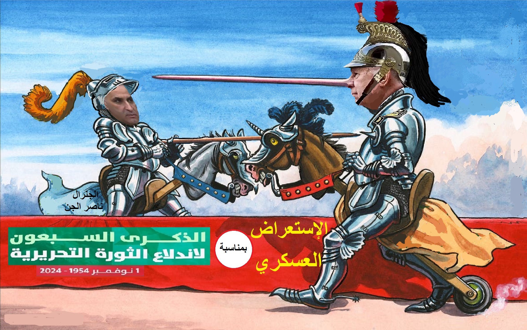 سرَّبت حسابات فرنسية تفاصيل خلاف شب بين الجنرال “عبد القادر حداد”، الشهير بلقب “ناصر الجن”، رئيس الأمن الداخلي بجهاز المخابرات الجزائرية، و بين قائد الجيش الجزائري”سعيد شنقريحة“، حيث قالت تلك الحسابات أن “ناصر الجن”، خلال اجتماع لقيادة الجيش عقب الاستعراض العسكري الأخير، الذي تم تنظيمه بمناسبة الذكرى السبعون لحرب التحرير الجزائرية، عاتب “شنقريحة” و أخبره أن الاستعراض كان ضعيفا و أثر بشكل سلبي على صورة الجيش الجزائري دوليا، و أن ما تم إظهاره من عتاد و ترسانة حربية بَيَّن أن الجيش الجزائري ليس بتلك القوة التي يتم ترويجها و يمتلك أسلحة كلاسيكية و غير متوفر على أسلحة ردع استراتيجية، و قال بأنه كان من الأفضل تفادي إظهار الأسلحة في الاستعراض و الاكتفاء بعروض الفرق العسكرية و التشكيلات القتالية، و عزف الموسيقى كما تفعل جل جيوش العالم منذ انتهاء الثنائية القطبية.