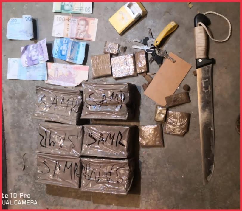 وقد جرى توقيف المشتبه فيه الأول في حالة تلبس بحيازة وترويج كمية من مخدر الشيرا، كما ضُبط بحوزته مبلغ مالي يشتبه كونه من عائدات هذا النشاط الإجرامي.