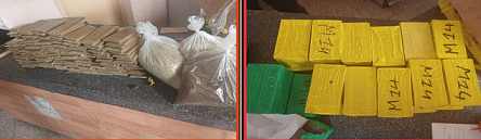 وقد أمكن توقيف المشتبه فيه بحي النهضة بمدينة الداخلة على متن سيارة نفعية متلبسا بحيازة وترويج كمية من مخدر الشيرا، قبل أن تسفر عملية التفتيش التي بوشرت بداخل مسكنه عن حجز 153 صفيحة من مخدر الشيرا بلغ مجموع وزنها 12 كيلوغراما و750 غراما، علاوة على كيسين من نبات الكيف بلغ وزنهما كيلوغرامين، فضلا عن 990 غراما من نبات طابا، كما جرى حجز مبلغ مالي يشتبه كونه من عائدات هذه الأنشطة الإجرامية، وكذا سكين خاص بتقطيع المخدرات.