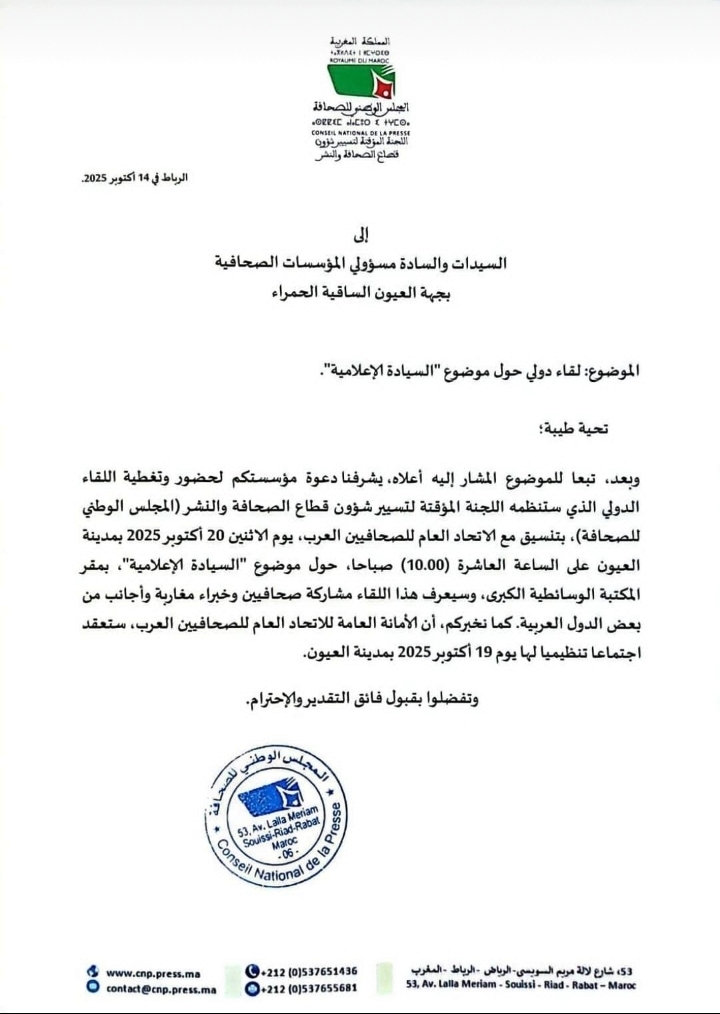 هام…مراسلة كَتْهَمْ مسؤولي المؤسسات الصحافية فْجهة العيون..مستجدات إدارة الموقع نشر في 15 أكتوبر 2025 الساعة 7 و 57 دقيقة CREATOR: gd-jpeg v1.0 (using IJG JPEG v62), quality = 82الصحراء اليومية/العيونمشاركة بفايسبوكFacebookFacebookمشاركة بتويترTwitterTwitter مشاركة بواتسابWhatsAppWhatsApp Share to ارسال ايميلEmailEmail مشاركة بلينكدانLinkedInLinkedInمشاركة بمسنجرMessengerMessenger طباعةPrintطباعة رابط المشاركة : الصحافة