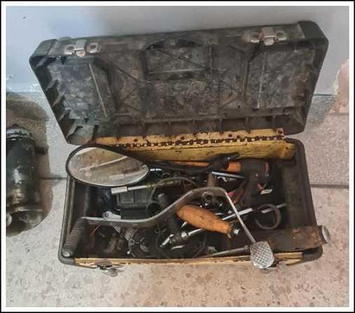 إجراءات التفتيش التي أجريت بداخل المرأب وبمسكنه أسفرت عن حجز مجموعة من أجزاء الدراجات النارية المستعملة، وهيكل حديدي وكذا ثلاث صفائح ترقيم خاصة بدراجات نارية تم التبليغ بسرقتها، علاوة على أدوات ميكانيكية استعملت في عملية التفكيك.