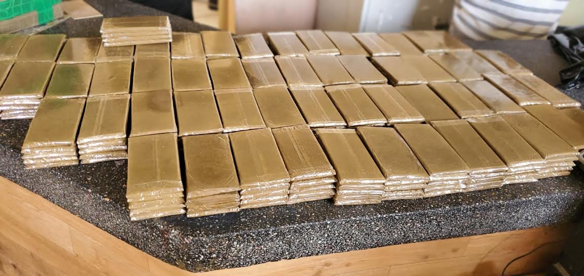 حيث أسفرت عملية التفتيش التي أجريت بداخل منزلين خاصين بالموقوف، عن حجز مجموعة من صفائح مخدر الشيرا بلغ مجموع وزنها أزيد من 24 كيلوغرام ونصف، علاوة على 25 كيلوغراما من نبات الكيف، فضلا عن أزيد من 23 كيلوغرام من مادة التبغ الخام، كما تم حجز مبلغ مالي وسكينين من الحجم الكبير، بالإضافة إلى سيارة نفعية يتنقل بها أثناء عملية الترويج.