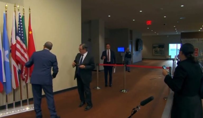 والتقطت عدسة الأمم المتحدة فيديو لخروج السفير عمر هلال من قاعة المناقشة حول نزاع الصحراء، وتوقفه بالمنطقة المخصصة للتصريحات الإعلامية لأخذ صورة تذكارية، حيث عمد على إخفاء علم الجزائر وتغطيته بالعلم الأمريكي قبيل أخذ الصورة التذكارية.