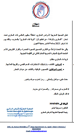 خَبَرْ زْوِينْ.. إعلان عن إقامة أول قرية لداء السكري بالمغرب فْلَعيون…مستجدات إدارة الموقع نشر في 6 نوفمبر 2025 الساعة 22 و 22 دقيقة CREATOR: gd-jpeg v1.0 (using IJG JPEG v62), quality = 85الصحراء اليومية/العيون الصورة تعبيرية. مشاركة بفايسبوكFacebookFacebookمشاركة بتويترTwitterTwitter مشاركة بواتسابWhatsAppWhatsApp Share to ارسال ايميلEmailEmail مشاركة بلينكدانLinkedInLinkedInمشاركة بمسنجرMessengerMessenger طباعةPrintطباعة رابط المشاركة : العيون