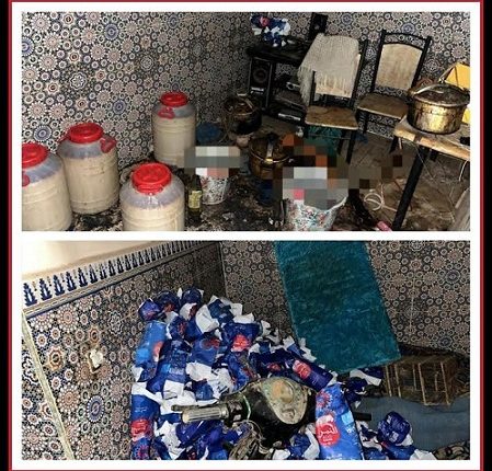 وقد تم توقيف المشتبه فيه بحي القصبة بمدينة گلميم قبل أن تسفر عملية التفتيش التي بوشرت بمسكنه عن حجز 35 لترا من صافي مسكر الماحيا و150 لترا من المواد المخمرة معبأة بداخل مجموعة من البراميل، علاوة على كمية من مادة السكر ومعدات معمل تقليدي خاص بتقطير المسكر مُكوٌن من ثلاث طنجرات ضغط وقنينتي غاز.