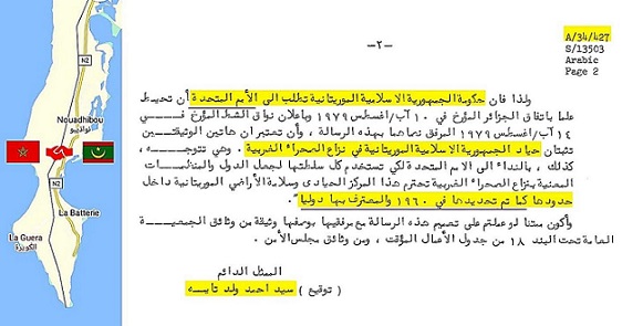 الرسالة، الموقعة من الممثل الدائم لموريتانيا لدى الأمم المتحدة بتاريخ 18 غشت 1979، تؤكد بوضوح أن نواكشوط تخلت عن أي مطالب أو صلة قانونية بالصحراء، وطلبت من الأمم المتحدة احترام حدودها المعترف بها دوليًا، دون أي امتداد خارجها.