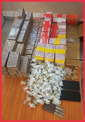 وقد جرى توقيف المشتبه فيهما بحي الوحدة بمدينة الداخلة قبل أن تسفر عملية التفتيش التي أجريت بداخل مسكنهما عن حجز 28 كيلوغراماً من مخدر الشيرا، علاوة على 760 غراماً من مسحوق نبات الكيف عبارة عن رزم صغيرة، كما تم حجز أربعة سكاكين خاصة بتقطيع المخدر ومبلغ مالي يشتبه كونه من عائدات هذا النشاط الإجرامي.