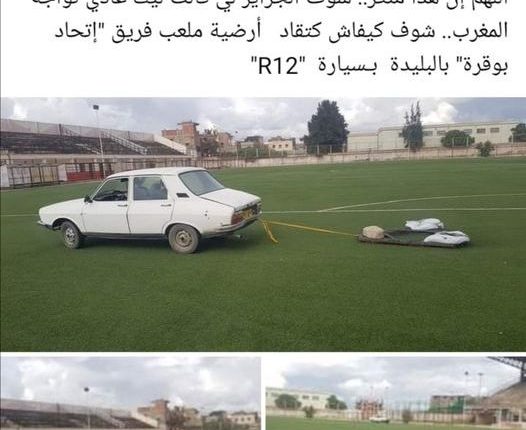 وللإشارة، أثارت الصور لعملية تسوية أرضية الميدان باستعمال سيارة “رونو 12” قديمة ومحراث بمشط جدلا واسعـا على مواقع إلكترونية، في حين حمل مصالح البلدية مسؤولية الوضعية التي يُعانيها النادي.